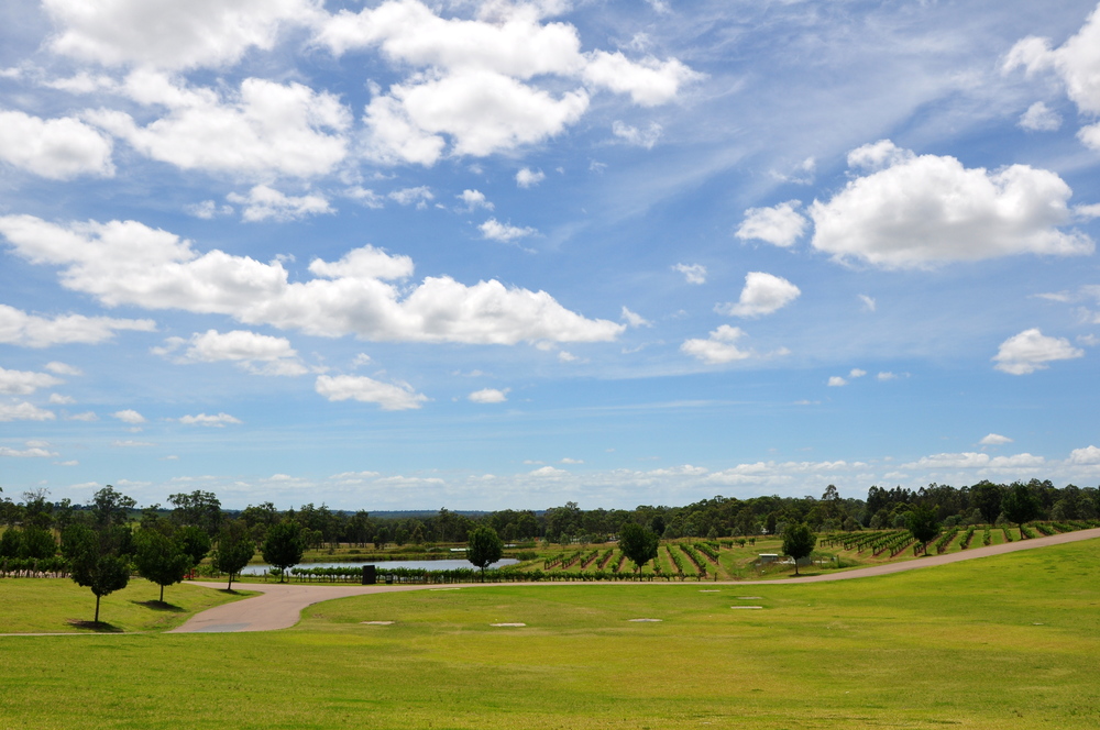Though I am partial to New World wines I never have been a huge fan of either Semillon or Shiraz, two varietals Australia is well known for.  The Hunter Valley region, not as famous as Australia’s Barossa region on the worldwide stage, is especially famous for its Semillon and Shiraz.  To be honest even though they’re not my favourite grapes I still love drinking wine in wine country.  So we drove the 90 mins it took to get there and started to taste the moment we arrived.  The first winery we passed by actually had a bunch of wild Kangaroos hopping around in its vineyard, sweet.  The lady at our guesthouse recommended some small wineries to us so we started with those to get our tastebuds wet.  We eventually moved on to the larger, more picturesque wineries to soak in some views and take some shots (pictures).  Some of the wineries were massive and promoted concerts as well on their grounds.  For example, INXS was playing at one winery sometime in the near future while Neil Diamond was playing at another.  I wouldn’t have minded watching INXS (I have no idea who their lead singer is now though I did have the KICK tape when I was a kid and I used to love ‘Never Tear Us Apart’.  My air guitar always came out after the silent pauses in that song.  And the saxophone solo was pretty sweet too, they should bring the saxophone back.  Sorry, I digress.) but sadly Di didn’t really know any of their songs.  Even more sad than that, she knew who Neil Diamond was.  And what’s even more sad then that?  She’s a huge fan of the song ‘Sweet Caroline’ because of the version sung in Glee.  But again, I digress.  Anyways, we had our first multicourse fine dining meal in Australia at a top restaurant here as well.  All in all, the wine was decent and the food was good.  However, the last wine region we visited on our trip was around the South African towns of Franschhoek and Stellenbosch.  In comparison I would have to say that South Africa’s wine valley was superior in every aspect.  Our meals there blew us away, the wine was delicious and their valley was stunningly beautiful.  Our friends here concur that Hunter Valley is not Australia’s best, so hopefully in Tasmania we can check out some wine as well.  I do sound like a snob here though; Hunter Valley still really is a nice place (just look at the above picture) and a short drive from Sydney, so recommended if you have some extra time like we did.